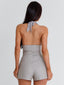 Meet our Ariyah Shorts in Grey Stripe, designed to contour the waist while offering a sleek, tailored finish. Crafted from structured woven fabric, she features a flattering waistband and a clean silhouette that pairs perfectly with the matching top. Finished with a side seam zip for ease of wear, she’s your go-to for polished day-to-night styling.