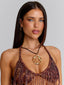 This pendant necklace features an oversized gold-tone charm with an abstract, sculptural, swirl design. Finished with a smooth faux leather (PU) cord, it’s the kind of statement accessory that instantly pulls a look together. Perfect with basics, denim, or date-night fit.