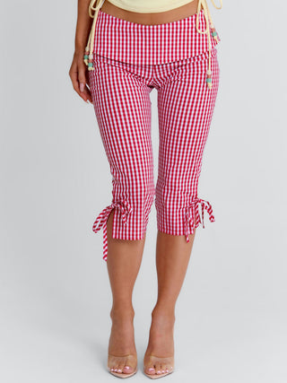 LENNIX CAPRI PANT RED GINGHAM