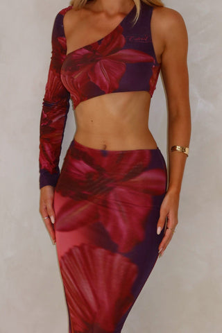 The perfect vacation fit', Sephora is crafted from a mesh fabrication that is lined with poly-knit for comfort and to create a body-con fit. She features an asymmetrical neckline with a one-shoulder long sleeve that adds further intricacy to the crop.