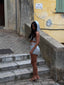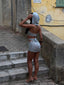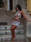 The 'Slyvia Mini Skirt' in Silver is the ultimate festival piece. Crafted from sheer Ursa fabric, this Y2K-inspired design features straps that sit on the waistline for a bold, statement look. Lined for just the right amount of coverage, this mini is the perfect match for the Slyvia Top—a must-have set for festival season.
