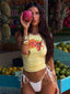 Meet our Tella Top in Yellow, a playful summer essential designed to brighten your everyday styling. Crafted from soft stretch jersey, she features a flattering racer silhouette with a statement floral graphic at the front. Designed with adjustable side ruching, she contours the body for the perfect fit while adding a touch of detail. Perfect for summer days, sorority events, or casual outings.