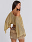 Meet our Valina Top in Gold, an effortless statement top made for your next party or festival! Crafted from metallic lurex knit, she drapes softly across the body with an asymmetrical poncho-style silhouette that feels relaxed yet elevated. The lightweight design and pull-on fit make her an easy piece to style, bringing subtle shimmer.