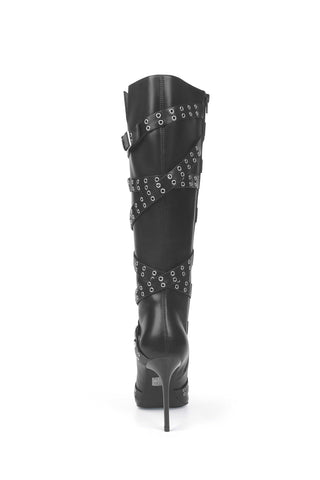 Crafted from a PU leather, Zaneta is designed with a pointed toe, sleek stiletto heel and has a zipped on the inner of the boot for easy on-off. Zaneta has wrapped around strapping that is detailed with silver eyelets and complete with a buckle and custom Outcast hardware to create the perfect blend of classic and edge.