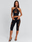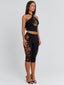 Crafted from soft jersey, she features a halter neckline with a lace-inspired laser cut detail through the bust, creating a bold, sculpted look. The pull-on design offers a smooth, flattering fit, making her the perfect statement piece for day or night styling.