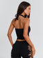 Meet our Zhera Top in Black, a sleek crop designed to contour the body.