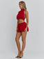Meet our best selling Anahi Mini Skirt in Red!