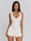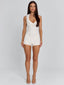 Crafted from stretch lace, she features a plunging neckline with soft ruffle detailing and a gathered seam through the body for a flattering, sculpted fit. The long neck tie adds a styling element that can be worn loose or draped for a more elevated look. Finished in a body-hugging silhouette, Avila is an easy choice for Valentine’s plans, vacation nights or festival days.