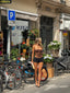Style Bayley back with our Sola Mesh Corset Top & statment jewellery to dress her up. Or pair back with our Dayton Baby Tee for a more causal vacation fit'.