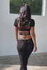 She is the life the party. Turn up the heat in our 'Cora Crop Top' in black. This iconic lace crop has a lined bust and unlined bodice and décolletage detailing. With a scallop lace detailing at the bust and bodice this crop is anything but basic! Made from an exclusive burn out velvet mesh. Style our 'Cora Lace Crop Top' with the matching 'Cora Lace Pants' in Black to be festival ready!