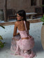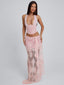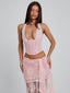 Meet our Debbie Top in Pink. Crafted from delicate lace with sequin lace contrast and lined in mesh, she’s designed to sculpt the body with a structured corset fit. Featuring boning through the bodice and a lace-up corset back for adjustable shaping, Debbie is finished with a true tie halter neck and plunging neckline for a feminine, statement silhouette.