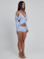 Meet our Elani Playsuit in Blue, she’s a festival-ready set designed to flatter from!