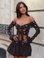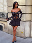 Crafted from a printed mesh fabrication, this mini features an off-shoulder neckline with a bow detail at the bust for a feminine touch. Long sleeves with soft flare hems compliment the voluminous bubble skirt, creating a balanced silhouette that feels both flirty and refined.