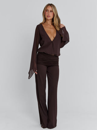 Crafted from sheer georgette fabrication, Lenna is designed with a straight-leg silhouette and a soft waistband overlay for coverage. The lightweight finish creates fluid movement through the leg while maintaining a refined, relaxed fit.