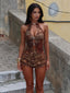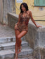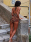 Designed in printed lace with a soft polyknit lining, this playsuit serves the perfect mix of sheer and coverage. The halterneck is detailed with delicate beads, while subtle front cut-outs add to the statement look. Finished with ruffled shorts, it's everything you need to own the night.