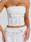 Crafted from sheer lace, this skirt features a flattering, body-skimming silhouette with a PU belt detail at the waist for a subtle contrast. Finished with a concealed side zip for a smooth fit.