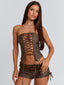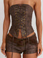 Meet our Lunexa Short in Brown, designed to define the waist and elongate the legs. Crafted from PU leather, she features a flattering low-rise fit with lace-up ties at the side seams for an adjustable, statement finish. Complete with a faux suede belt and antique brass hardware, she brings an elevated edge to the matching set.