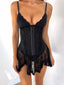 Cut from a luxurious lace fabrication, Maison is a delicate and dainty mini that features a triangle shaped bust with adjustable shoulder straps, a cinched corset styled waist designed with hook and eye closures down the centre front and an invisible zip closure a the side for easy on off. Maison has an ultra feminine sheer floaty hemline. She is complete with a bodysuit insert for convenience and to hug your figure!