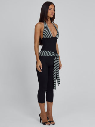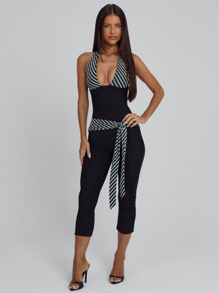 MALANI CAPRI JUMPSUIT BLACK STRIPE