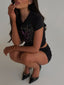 She was made to suit your day to day fits, introducing your new go-to baby tee... our 'Maneater Baby Tee' in Black!