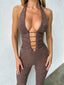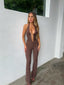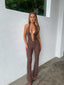 Ultra-chic and sexy wearing our 'Sawyer Jumpsuit' in Mocha.