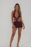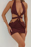 Crafted from a mesh fabrication, Tasha is designed with strategically placed cut outs to flatter your figure. With a tie-up halter neckline, you can create your desired fit that allows support. She features gold ‘O’ ring details above the hips and is complete by sitting at a mini length to showcase your legs.